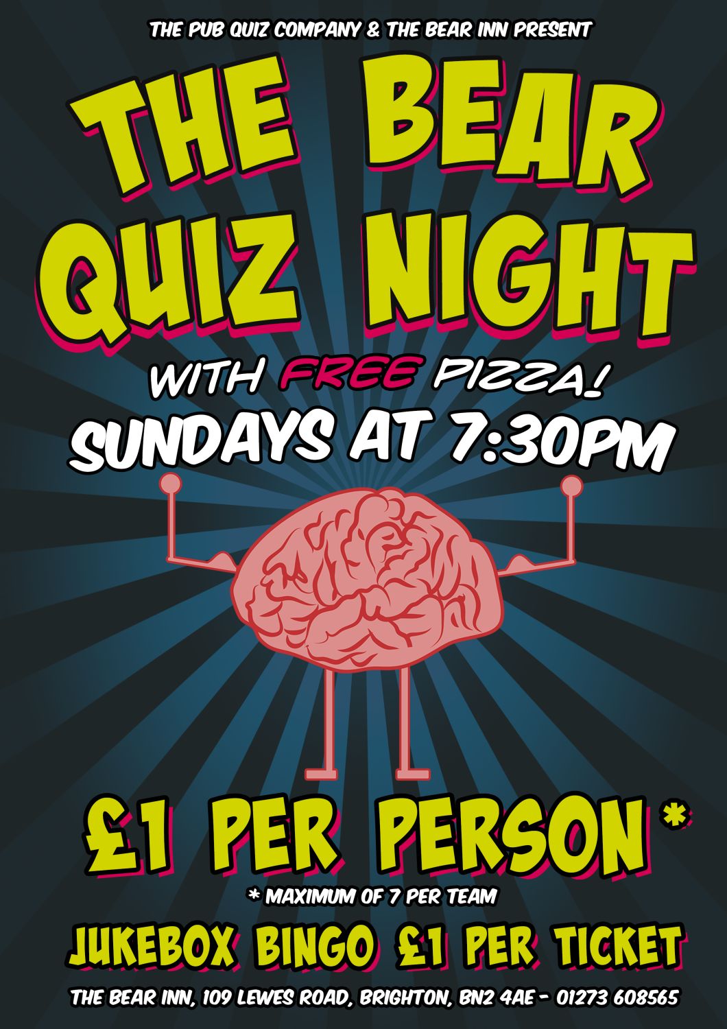 Ever go out and feel like everyone around you is secretly smarter than you? Tired of hearing that media degrees “aren’t real degrees”? Love FREE PIZZA? Then you need to be at our Sunday quiz night at The Bear in Brighton!